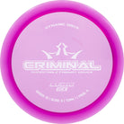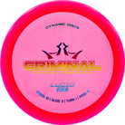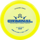 "Bad company corrupts good morals" has been proven true through the ages. However, Dynamic Discs is bringing you a Criminal that you are going to want to get to know. With more glide than the Felon and more stability than the Convict, this Criminal is exactly what you need to assault your high scores. The fairway driver that will be able to trust to cover the ground necessary without giving up the stability you need for confident throws. Befriend this Criminal and you will start to do some bad things to your course.