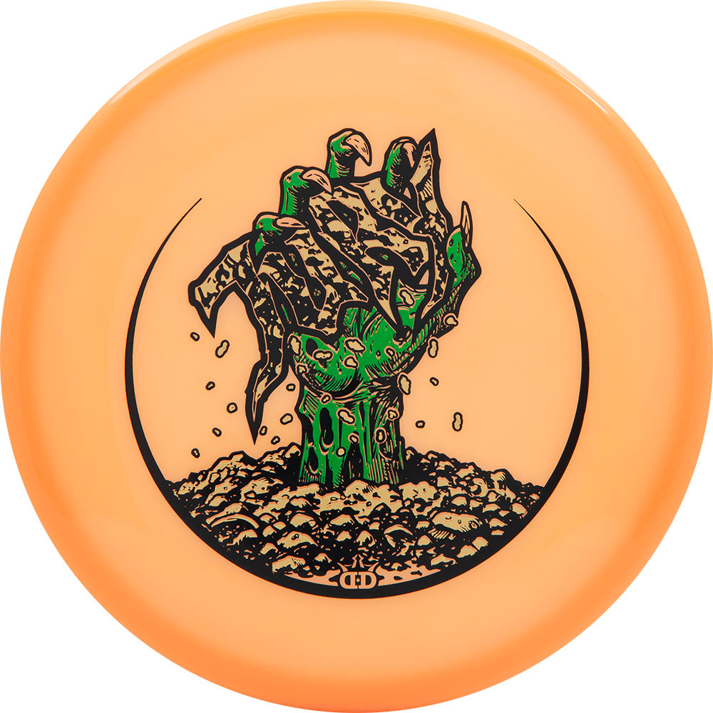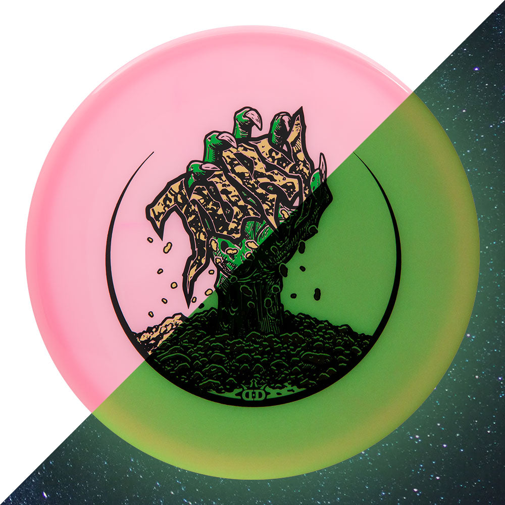 Step into the court of shadows with the Moonshine Jury, a chilling Halloween release from Dynamic Discs. Featuring a haunting custom stamp that brings eerie justice to the night, this disc isn’t just a collectible, it’s built to perform when the sun goes down. Molded in our glow-in-the-dark Moonshine plastic, the Jury shines with durability, grip, and a spooky glow that lights up every haunted fairway.