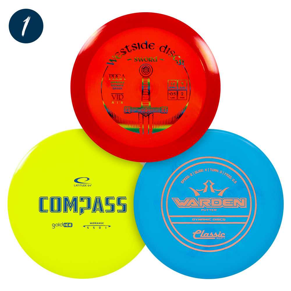 Here is the highly anticipated Premium Trilogy Starter Set, fulfilling the many requests of Trilogy disc golf enthusiasts everywhere. This exclusive collection features beginner-friendly disc molds from Dynamic Discs, Latitude 64, and Westside Discs, providing an unparalleled introduction to the game. Each set includes three discs, showcasing the perfect balance of power, control, and accuracy – a neutral driver for distance, a versatile midrange disc for precision in various conditions, and a reliable putter for the final tap-in. Elevate your game and embrace the excitement of disc golf with your choice of starter set that meets the demands of beginners seeking top-quality discs from the Trilogy brands.